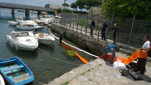 FORMIA – Isolata la perdita di benzina nella darsena della Torre di Mola. Proviene dagli scarichi fognari (acque bianche) proprio sotto il camminamento cementizio che costeggia l’antica struttura romana. I sopralluoghi svolti ieri dalla polizia provinciale in collaborazione con la capitaneria di porto, Locamare di Formia, hanno portato oggi ad impiantare con l’ausilio di una ditta specializzata e del sub esperto Salvatore Gonzales una serie di “panne antinquinamento” direttamente in mare, tra le imbarcazioni ormeggiate. Le operazioni, ampiamente documentate nelle foto, si sono svolte nella tarda mattinata di oggi.