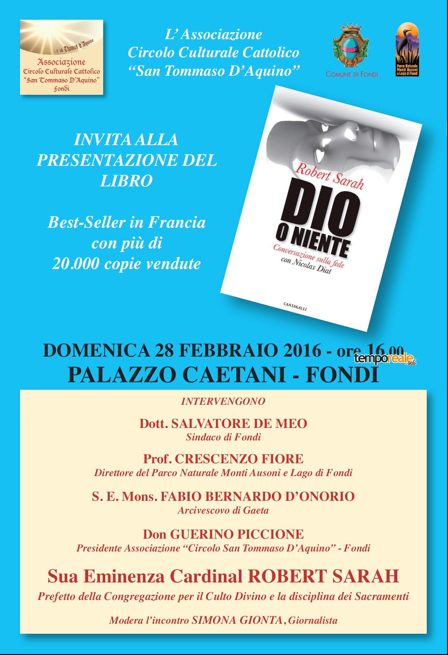 Fondi / Il cardinale Robert Sarah a Palazzo Caetani presenta il suo nuovo libro “Dio o niente”